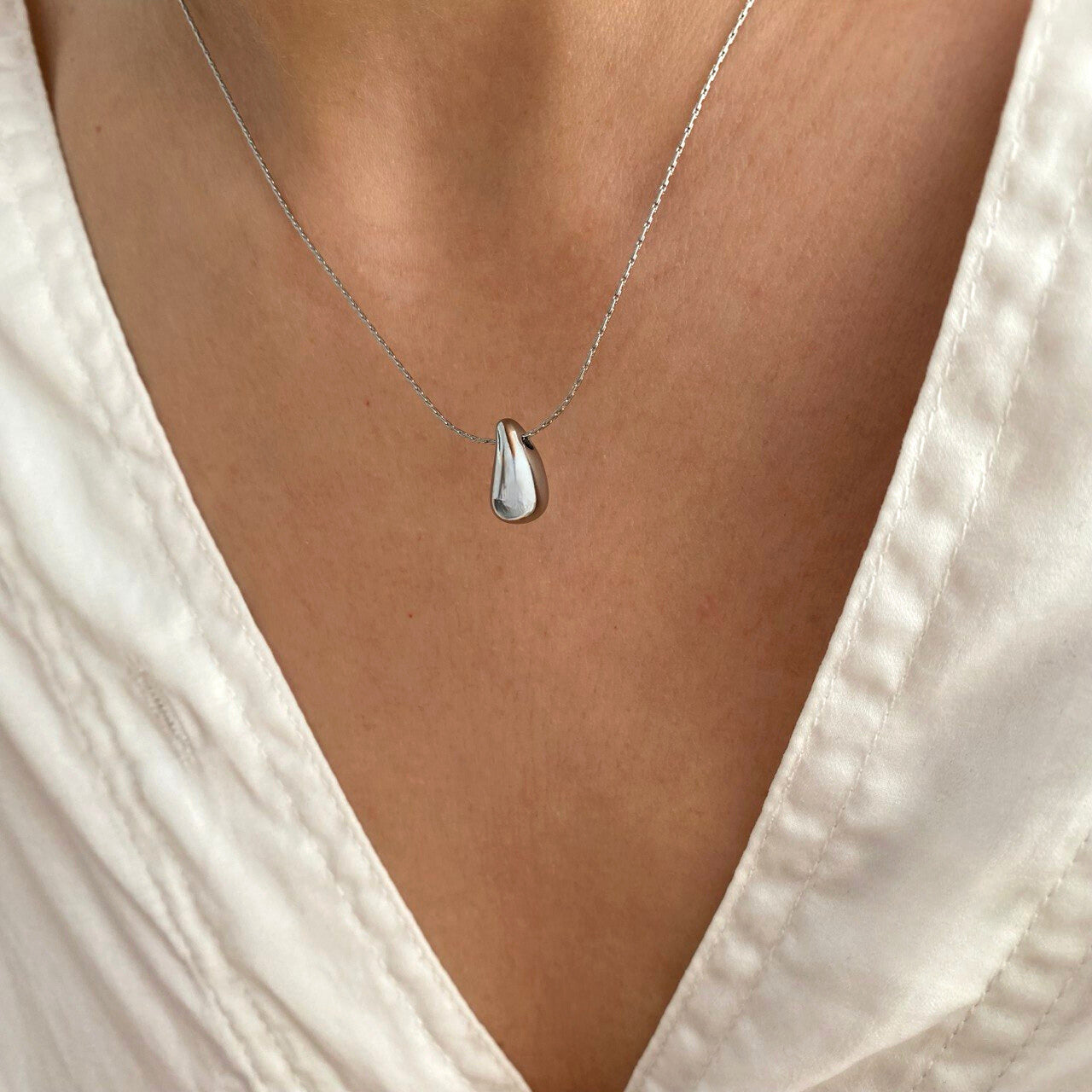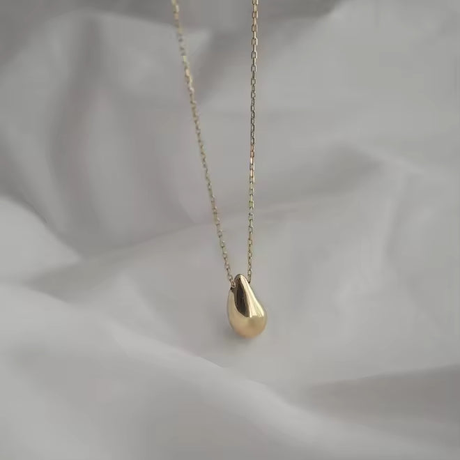 El collar TEA presenta un colgante de forma de pera delicadamente chapado en oro o plata, ofreciendo un diseño elegante y atemporal. Su silueta de lágrima aporta un toque femenino y sofisticado.
